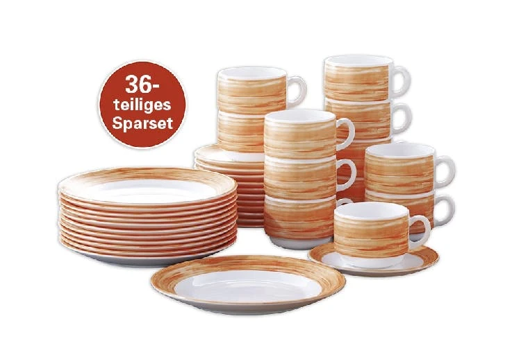 enthält je 12 Kaffee-Obertassen, Untertassen und Dessertteller.
