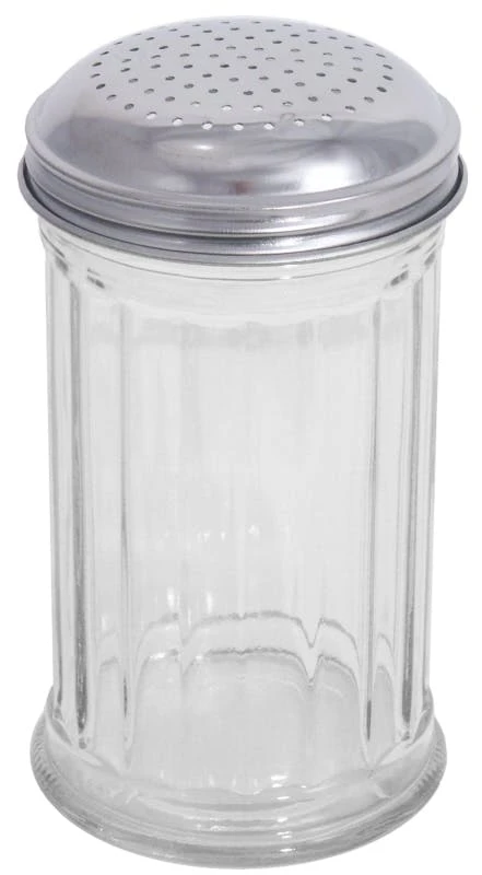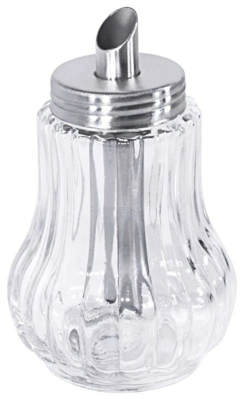 Zuckerstreuer, aus geriffeltem Pressglas, mit Kappe aus Edelstahl 18/0 , mit langem Dosierrohr, spülmaschinengeeignet, für ca. 300 g Zucker