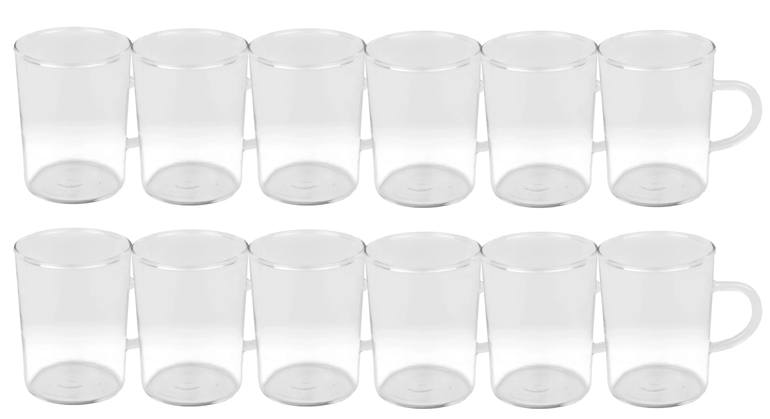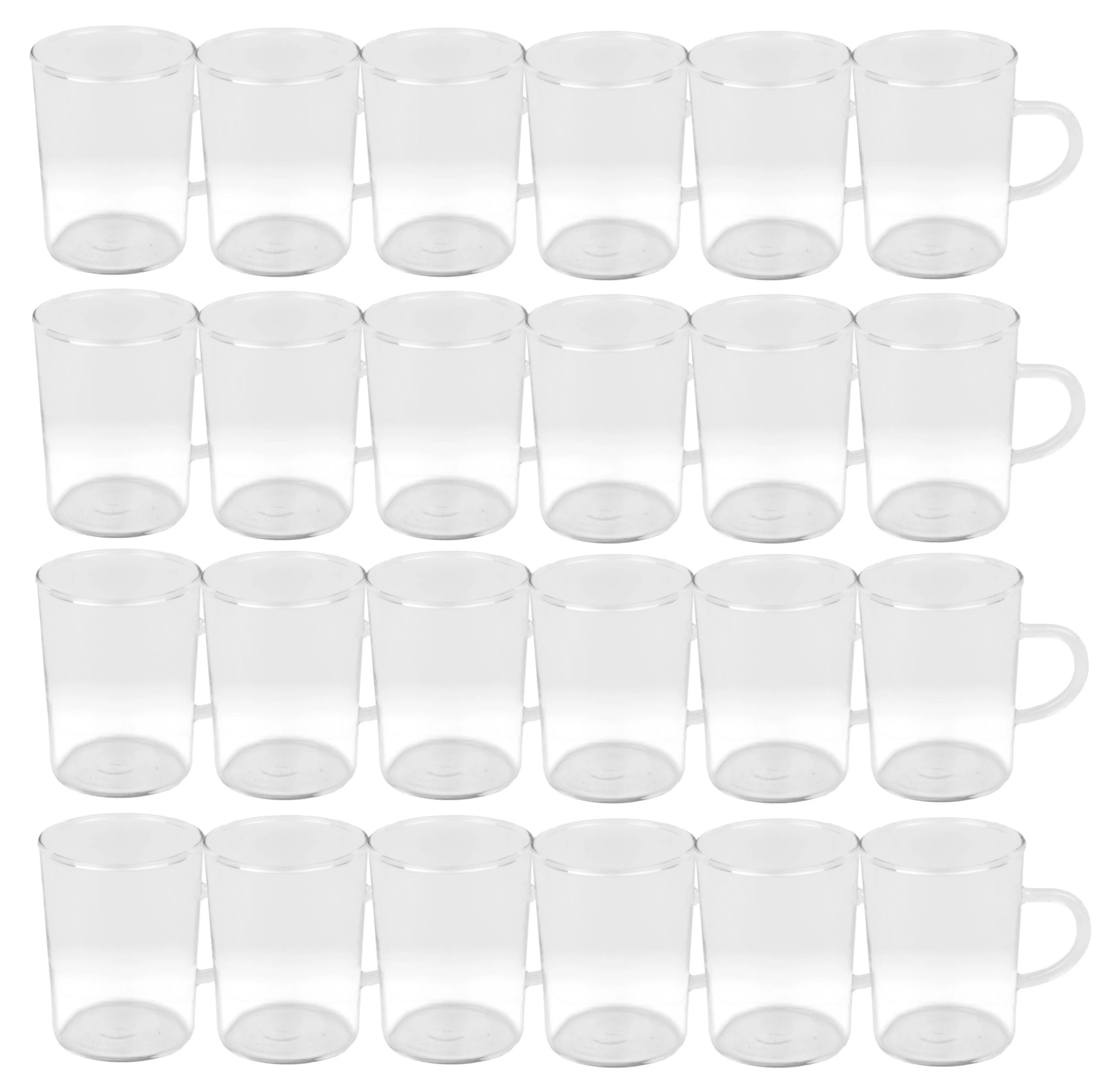 einem klaren Glas gefertigt und verzichtet bewusst auf etwaige Dekors. Dank des Henkels