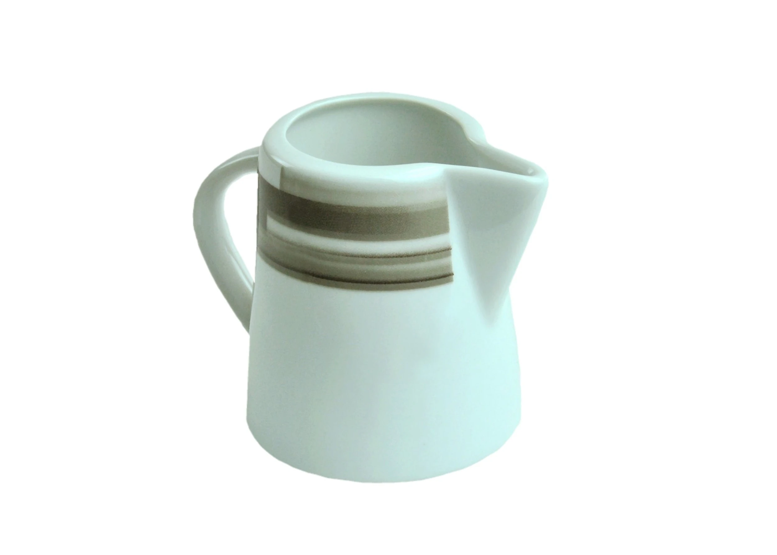 Kaffeesahne oder -milch stellen Sie am Besten im 83 mm hohen Milchkännchen bereit. Bis zu 220 ml fasst der lichtgraue Gießer aus Porzellan. Der Einfüllbereich misst Ø 50 mm. Eigengewicht: 180 g.