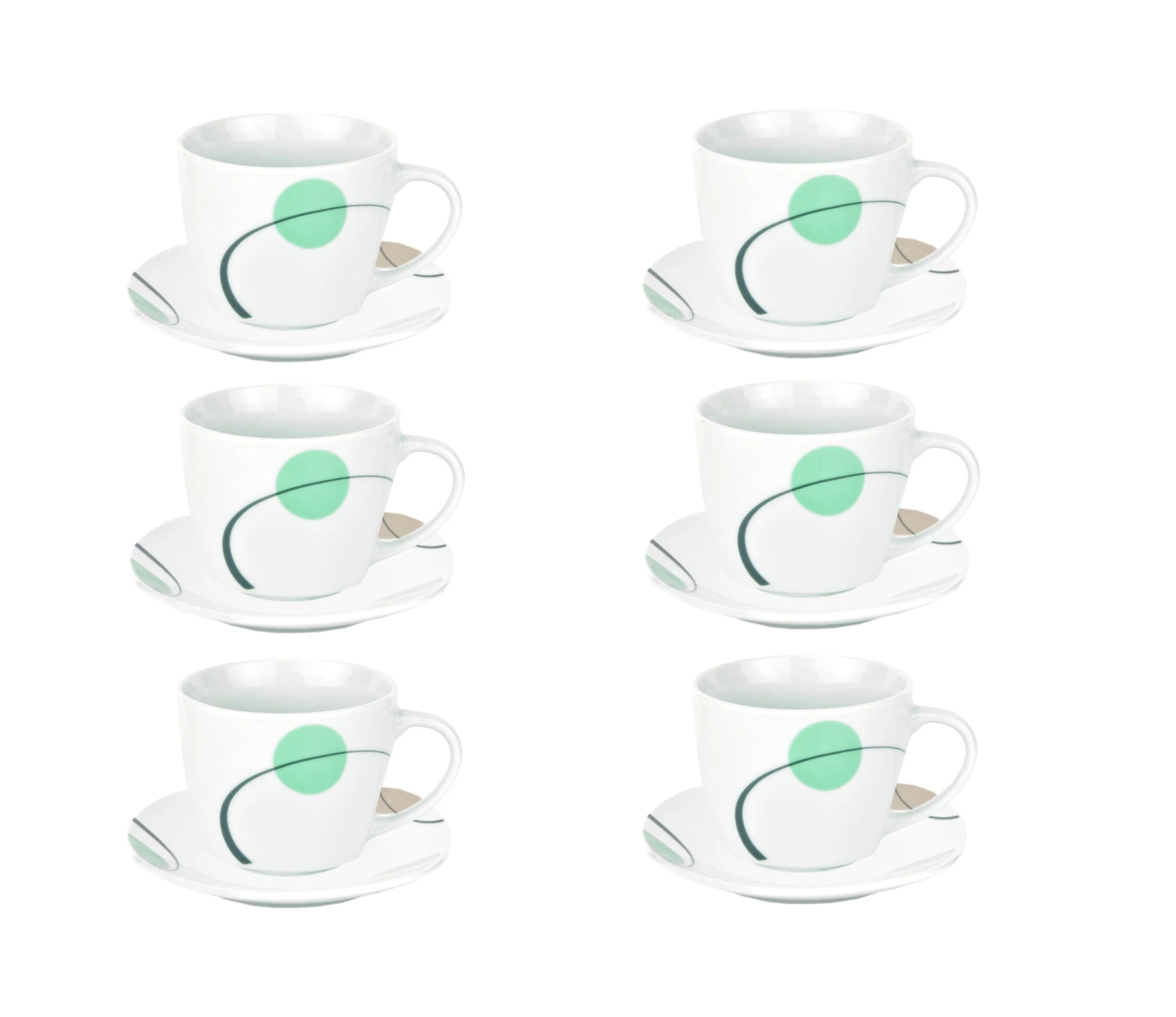 Van Well CORONA 6er Set Espressotasse + Untertasse, edles Porzellan, abstraktes Dekor, dreifarbig